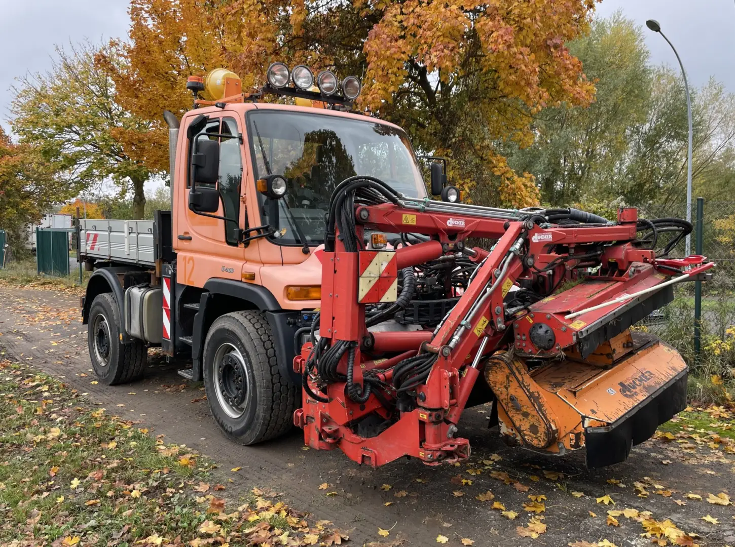 Unimog U400 mit Dücker Frontmähgerät,
