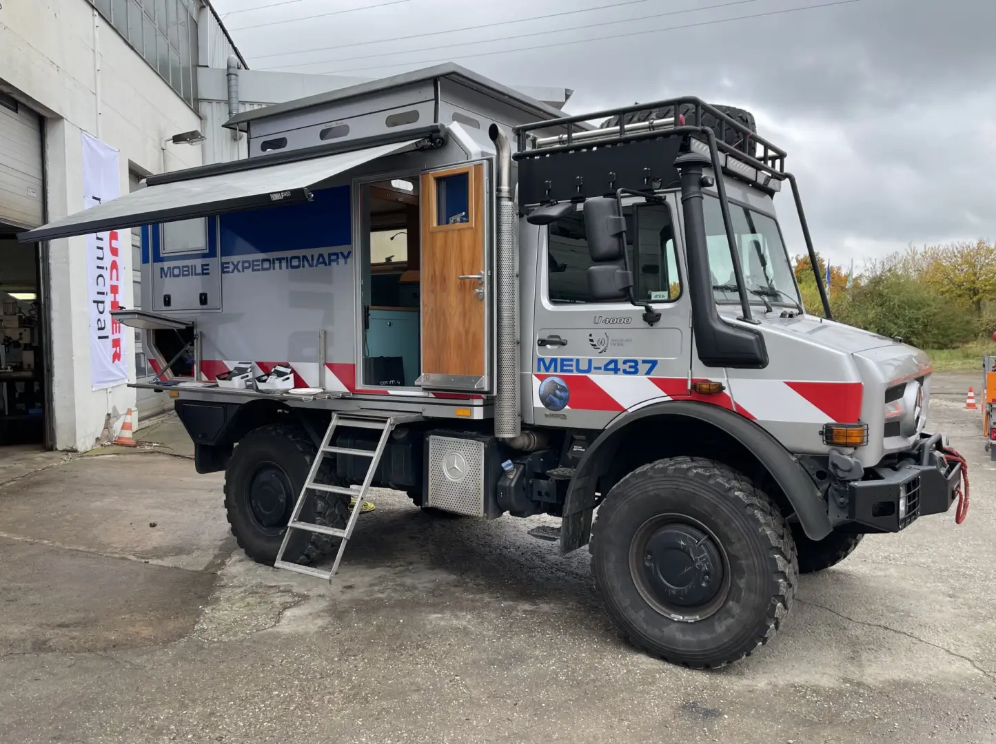 Unimog U4000 ehemals Statist im Film Jurassic World, jetzt mit neuem Kabinenaufbau von der Firma Bongo-Garage,