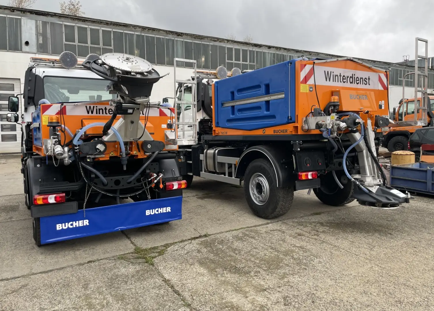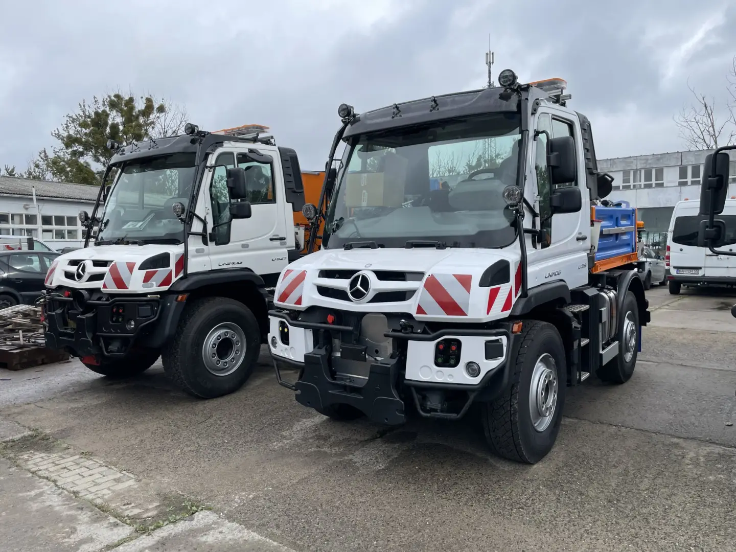 Unimog U527 und U216 mit Streuaufsatz,